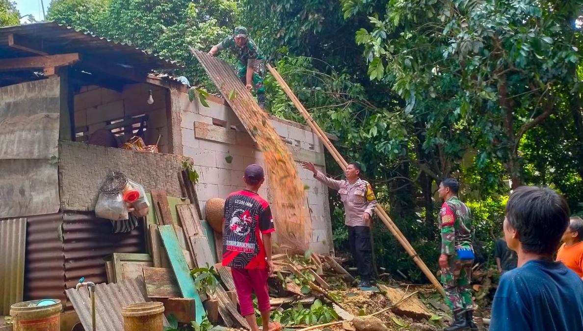 Kapolsek menambahkan pagi ini kami bersama TNI dan warga setempat langsung melakukan evakuasi pohon tumbang. Selain itu membantu membersihkan material bangunan yang berserakan,” ucap kapolsek.