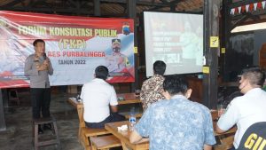 Purbalingga | mediaantikorupsi.com – Polres Purbalingga menggelar Forum Konsultasi Publik (FKP) Tahun 2022 di salah satu rumah makan, Kamis (11/8/2022). Kegiatan dilaksanakan untuk menyerap aspirasi masyarakat terkait permasalahan kamtibmas dan pelayanan publik untuk mencari solusinya.