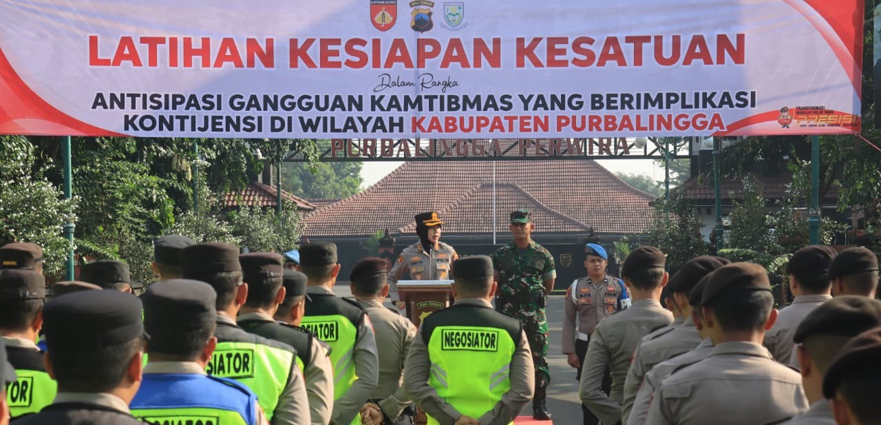Kapolres Purbalingga AKBP Anita Indah Setyaningrum usai kegiatan mengatakan hari ini Polres Purbalingga bersama stakeholder dan instansi terkait melaksanakan latihan antisipasi gangguan kamtibmas yang berimplikasi kontijensi.