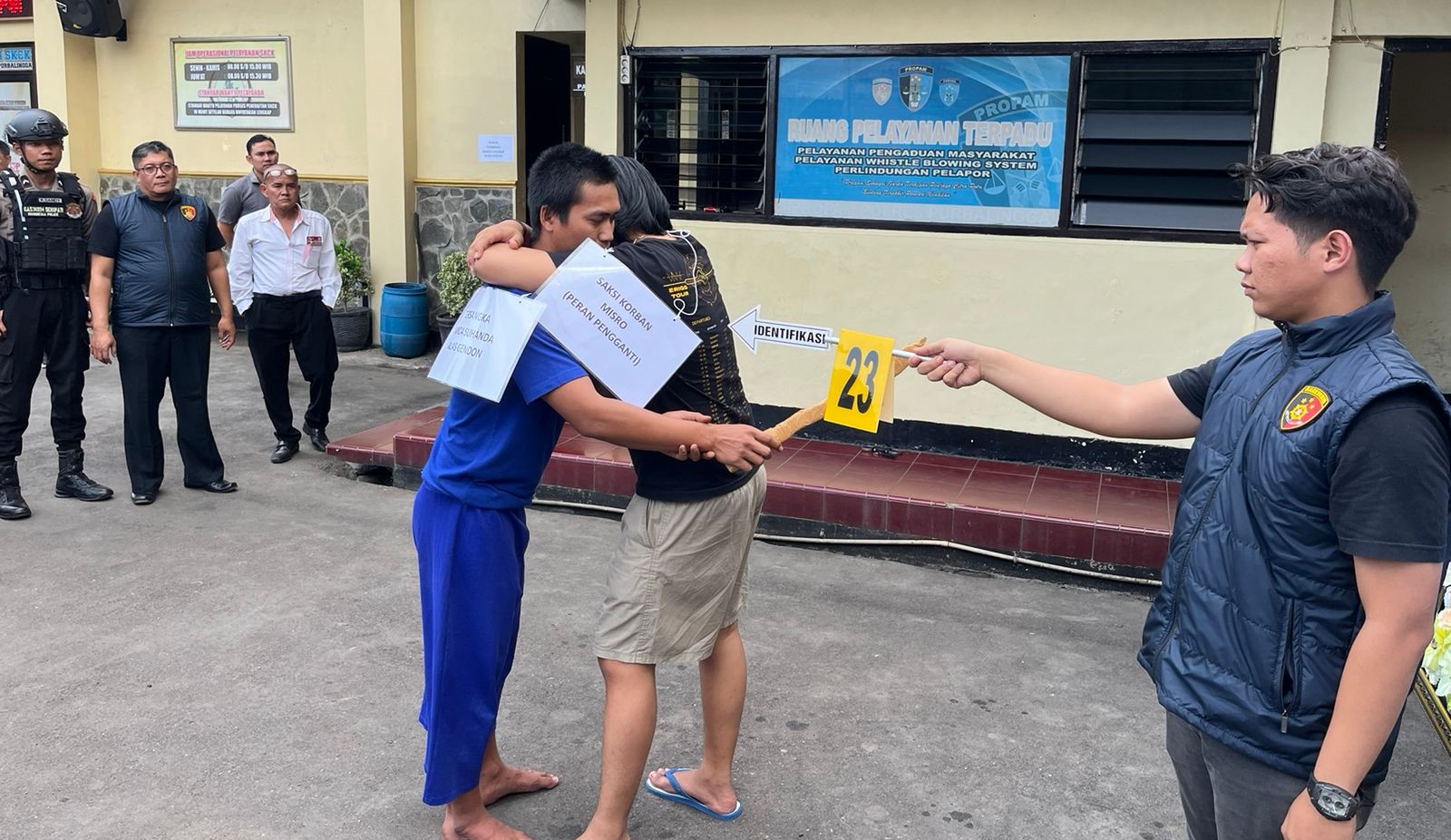 Tersangka yaitu NS alias Gendon (29) pedagang bakso, alamat Desa Cipaku Kecamatan Mrebet, Kabupaten Purbalingga. Sedangkan korban yaitu Misro (33) alamatnya sama dengan tersangka.