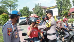 “Ini merupakan upaya preventif dan preemtif kami mengajak masyarakat tertib berlalu lintas. Salah satunya dengan pemasangan stiker pada kendaraan dan pembagian pamflet kepada pengendara,” jelasnya.