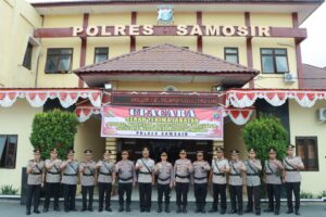 Upacara dipimpin oleh Kapolres Samosir, AKBP Yogie Hardiman, S.H., S.I.K., M.H. Acara ini dihadiri oleh Pejabat Utama (PJU) Polres Samosir, para Kapolsek se-jajaran Polres Samosir, perwira Polres Samosir, personil Polres Samosir, Ketua Bhayangkari Cabang Samosir Ny. Widia Hardiman beserta pengurus Bhayangkari, serta rohaniawan Kristen dan Islam.