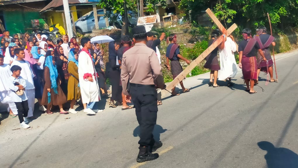 Ditambahkannya “selain pelaksanaan pengamanan di Gereja, Personil Polres Samosir dan Polsek Jajaran bersama Personil Koramil juga melakukan Pengamanan, Pengawalan dan Pengaturan Arus Lalu Lintas Saat Berlangsungnya Ibadah Jalan salib yang langsung diperagakan / dilaksanakan beberapa gereja oleh Umat Katholik dan HKBP di Kab.Samosir. Ibadah Jalan Salib ini adalah Ibadah untuk mengenang dan melihat kembali Perjalanan Yesus Kristus dalam memikul salib sejak dijatuhi hukuman mati hingga kematianNya di bukit Golgata dan Dikuburkan”.