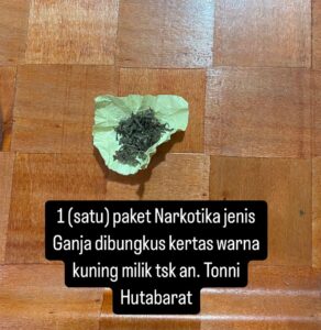 Dari hasil penangkapan itu polisi menyita 1(Satu) paket narkotika jenis ganja yang dibungkus kertas nasi warna coklat yang dibalut kertas Bon Faktur, 1 (Satu) paket narkotika jenis ganja yang dibungkus plastik bening,