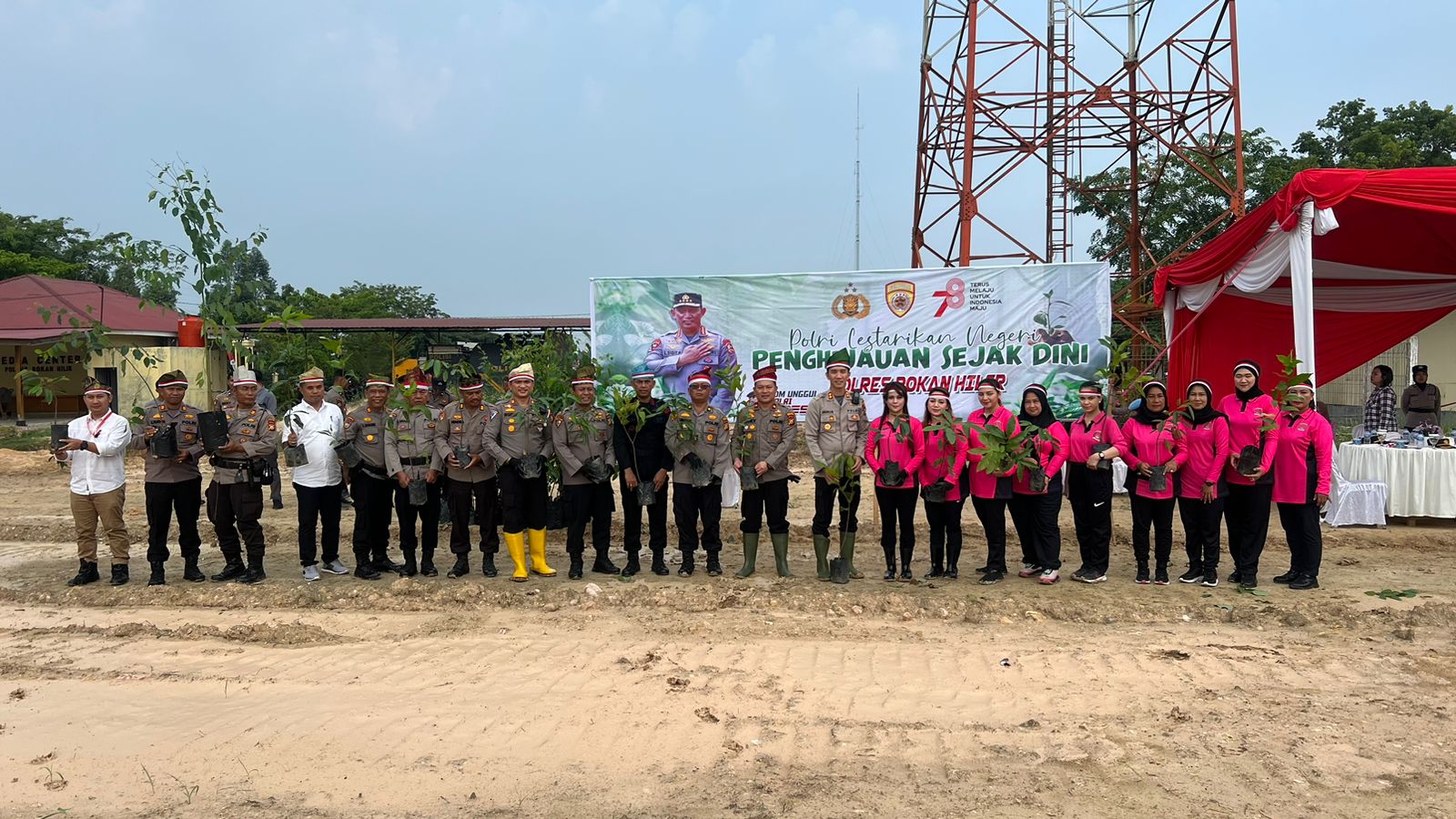 Rohil | mediasinarpagigroup.com – (Polres Rohil Polda Riau bersama 13 Jajarannya di seluruh Polsektor, hari ini Rabu 23 Agustus 2023. Pukul 07: 00 WIB menggelar aksi serentak melakukan penanaman pohon dengan total keseluruhan mencapai 2300. bibit pohon.
