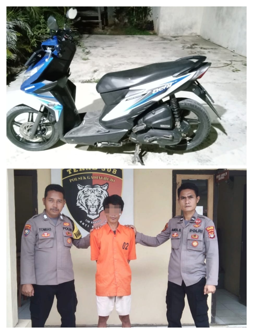 Pringsewu | mediasinarpagigroup.com – Aparat kepolisian Polsek Gadingrejo, Polres Pringsewu, Polda Lampungberhasil mengungkap kasus pencurian kendaraan bermotor (curanmor) yang terjadi di Pekon Tambahrejo, Kecamatan Gadingrejo, Kabupaten Pringsewu, pada Rabu (27/12/2023) lalu. Meskipun pelaku utama masih buron, namun dalam operasi penangkapan tersebut, polisi berhasil menemukan sepeda motor milik korban yang hilang dan menangkap seorang pelaku penadahan.