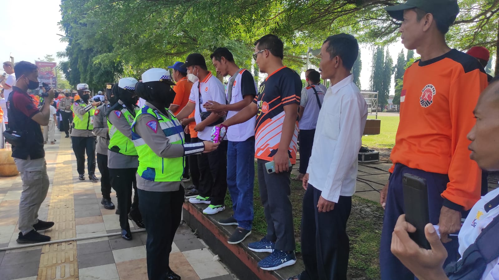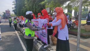 Purbalingga | mediasinarpagigroup.com – Aksi simpatik ditunjukkan Polwan Polres Purbalingga saat mengamankan aksi unjuk rasa (Unras) Partai Keadilan Sejahtera (PKS) menolak kenaikan BBM di alun-alun kota, Sabtu (10/9/2022). Mereka membagikan air minum, snack dan permen kepada peserta unjuk rasa.