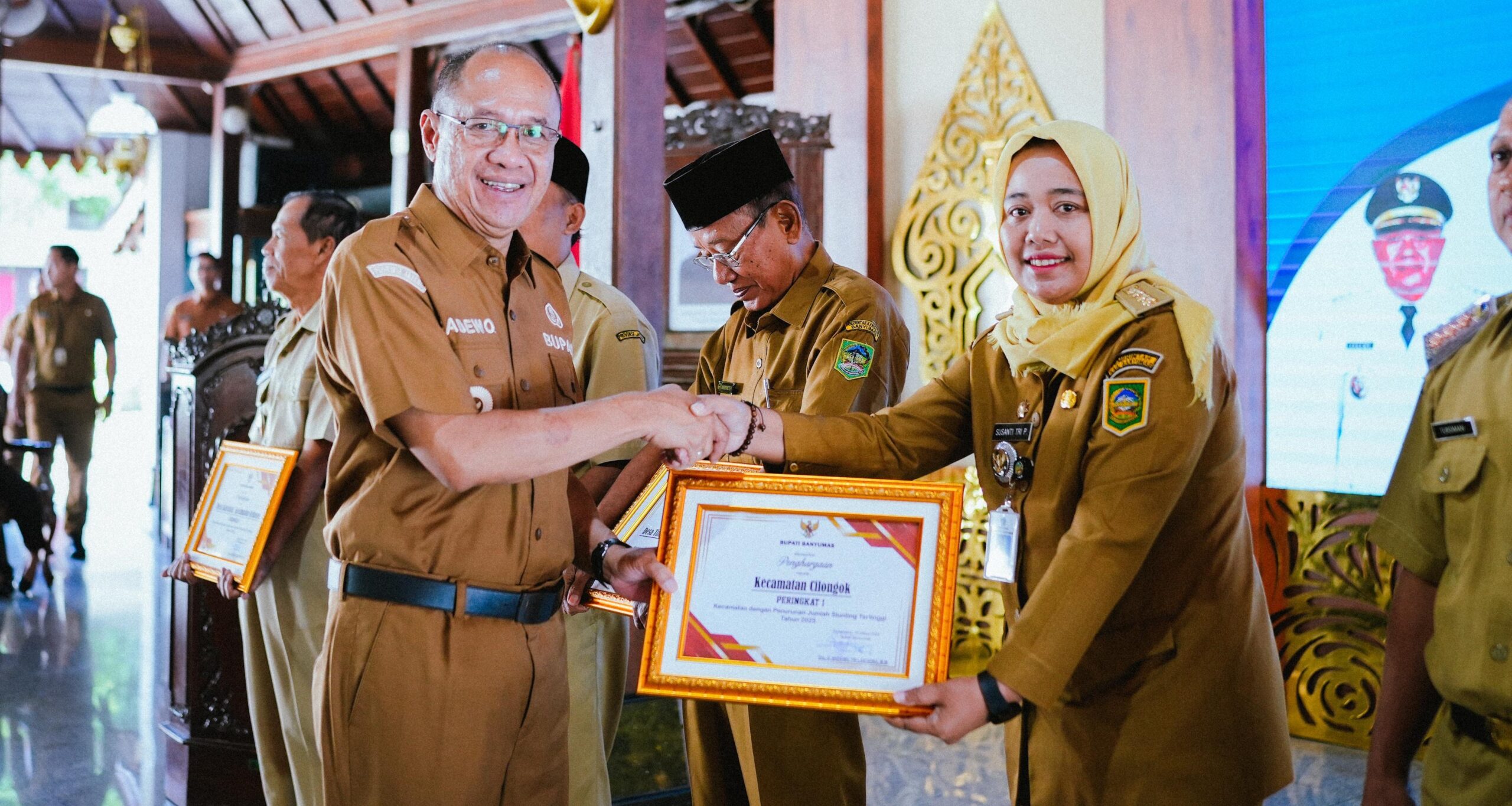 Pada kesempatan tersebut juga diberikan penghargaan kepada desa, kecamatan, dan mitra pembangunan yang menunjukkan kinerja terbaik dalam upaya peningkatan cakupan serta konvergensi intervensi stunting di Kabupaten Banyumas. Penerima Penghargaan Kategori Desa dengan Penurunan Jumlah Stunting Tertinggi Desa Kalisalak, Kecamatan Kebasen – Peringkat 1, Desa Sokawera, Kecamatan Cilongok – Peringkat 2 dan Desa Tinggarjaya, Kecamatan Jatilawang – Peringkat 3
