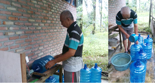 Rohil, mediasinarpagigroup.com – Air minum yang di Produksi secara alami dengan menggunakan kayu bakar juga hiegenis milik Karna sekarang udah mulai banyak peminatnya.