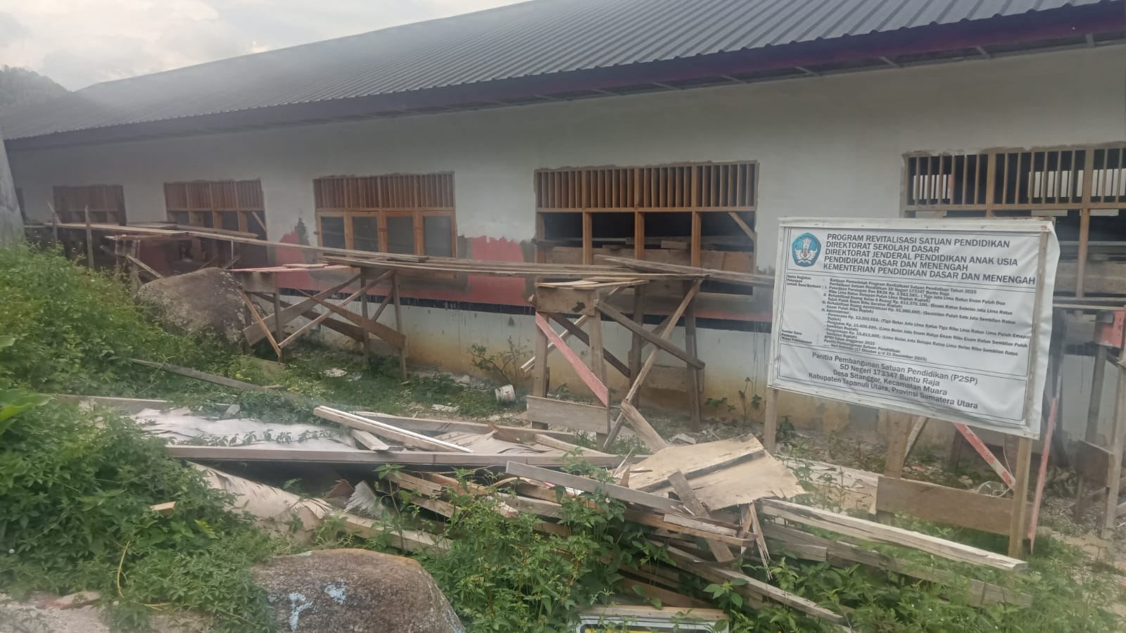 Dari papan informasi yang terpampang di lokasi pekerjaan diketahui, waktu pelaksanaan pekerjaan dimulai pada 17 Oktober s/d 31 Desember 2025 dengan item pekerjaan rehabilitasi 6 ruang kelas dan 1 ruang administrasi.