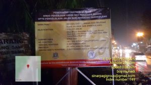 Informasi tambahan Proyek tersebut nilainya sangat  besar yaitu Rp.2.952.551.500.00, dengan No Kontrak : 761/248/SPK/UPTDPJJP/DPUPR/1X.2022, dari sumber dana dari APBD Provinsi Banten TA 2022.(Boy Madi)