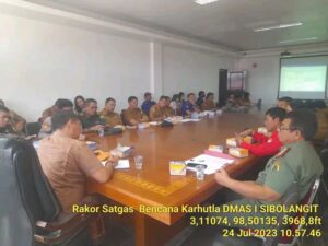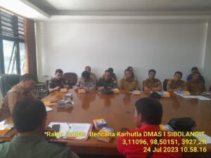 Karo | mediasinarpagigroup.com –Pemerintah Kabupaten Karo menggelar Rapat Pembentukan Satgas Kebakaran Hutan dan Lahan (karhutla) di ruang kerja Sekretaris Daerah (Sekda) Kabupaten Karo Provinsi Sumatera Utara, Senin (24/7/2023).
