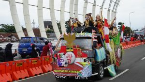 Disepanjang rute karnaval juga terlihat antusias masyarakat cukup tinggi untuk menyaksikan karnaval mobil hias ini.