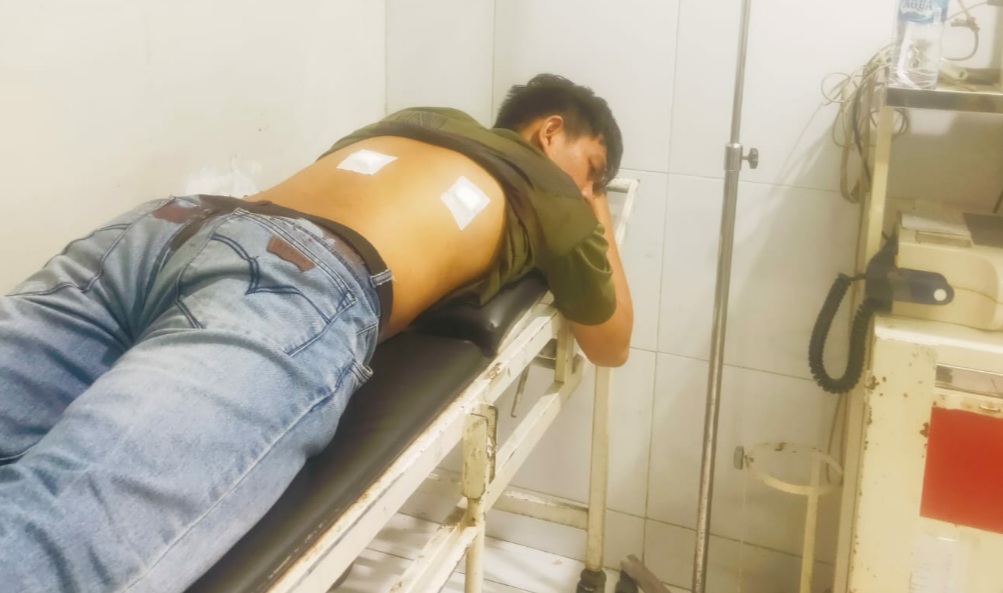 Begitu cepatnya kejadian sehingga korban tak sadar bila bagian punggungnya terkena tusukan benda tajam oleh salah satu pelaku.