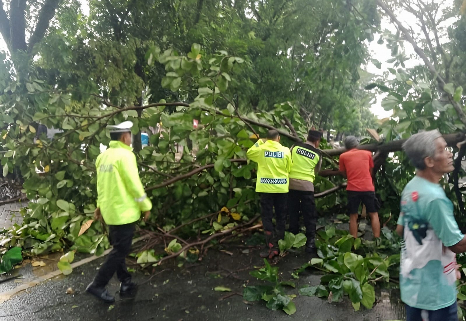 Menurut Kapolsek, proses evakuasi di dua lokasi pohon tumbang berlangsung sekitar dua jam. Evakuasi dilakukan personel kepolisian bersama TNI, BPBD dan masyarakat setempat.