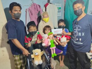 “Semoga ini memberikan manfaat untuk adik Guntur yang sakit pengecilan saraf, Riski bocor jantung, Vanesa ada cairan di otaknya dan orang tuanya yang hanya pekerja serabutan”, tambahnya