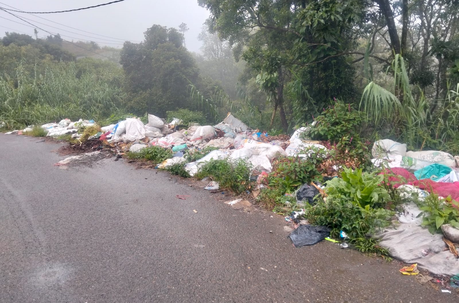 Sampah yang menumpuk tidak hanya sampah biasa, tetapi juga sampah berbahaya seperti pecahan kaca, bangkai ternak, kucing, anjing, ayam, dan lain-lain. Kondisi ini sangat membahayakan pengguna jalan yang melintas di lokasi tersebut.