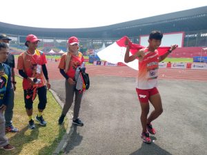 Perjuangan Sapto belum selesai. Karena pada laga berikutnya Rabu 3 Agustus dia masih akan turun di nomor 400 meter T37 dan estafet.(Widoyo)