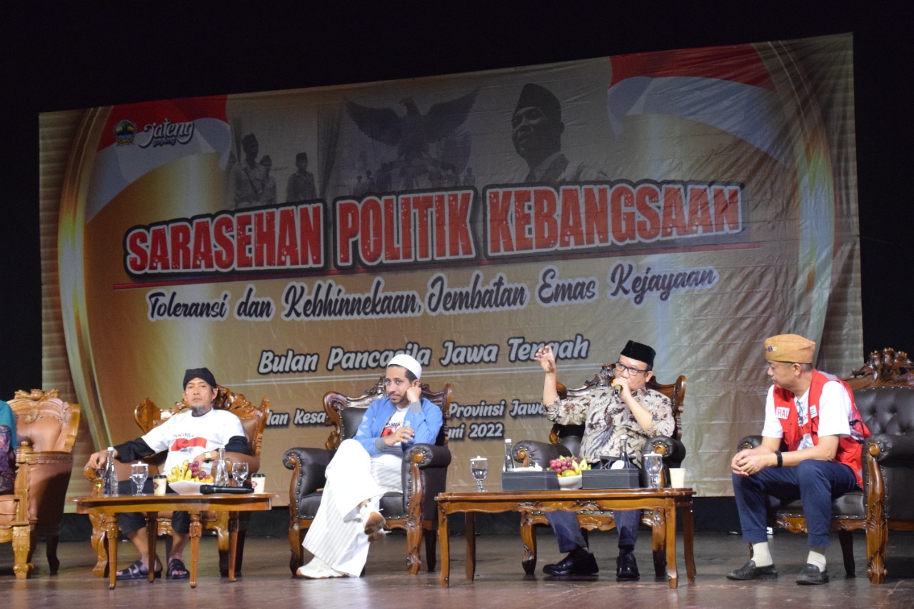 Kegiatan yang dilaksanakan di Gedung Kesenian Soeteja Purwokerto ini mendatangkan 5 narasumber yaitu, Bupati Banyumas Ir. Achmad Husein,Bupati Tegal Hj.Umi Azizah , Gubernur Jawa Tengah yang diwakilkan oleh Sekda Jawa Tengah Sumarno, Habib Jafar serta CEO Marimas Harjanto Halim yang berbicara mengenai politik kebangsaan dengan tema toleransi dan kebhinekaan, jembatan emas kejayaan.