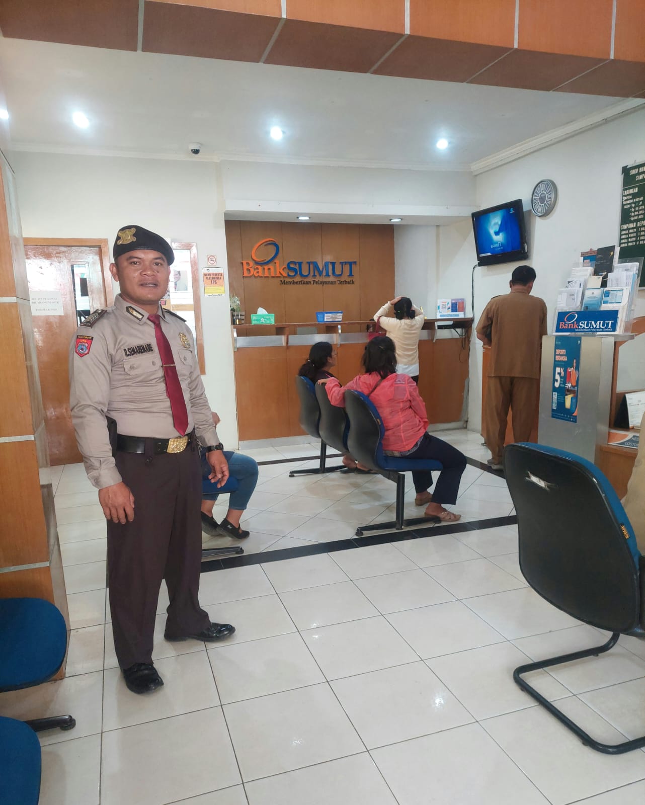 Personil Sat Pam Obvit Polres Samosir melaksanakan penjagaan di Kantor perbankan yang berada di Kabupaten Samosir untuk mencegah terjadinya ganggguan kamtibmas serta memberikan rasa aman, nyaman kepada karyawan dan nasabah bank. (Selasa, 30 April 2024).