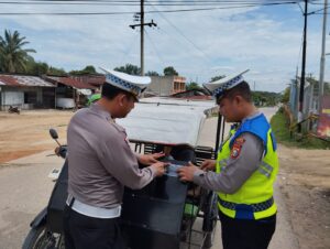 Satgas Preemtif Satlantas Polres Rohil Bagikan 100 Stiker Keselamatan