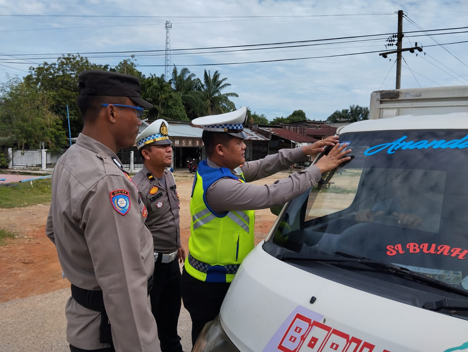 Satgas Preemtif Satlantas Polres Rohil Bagikan 100 Stiker Keselamatan