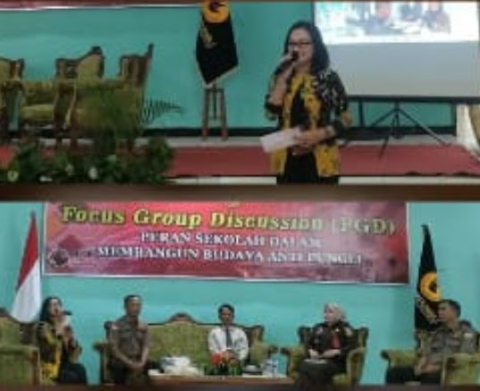 Penyampaian selanjutnya oleh narasumber ke-tiga oleh rektor universitas Pat petulai kabupaten rejang Lebong bapak Indrayanto M.App.Ling.M.Pd.I,.PH.D yang berisikan membangun budaya arti pungli di sekolah membutuhkan komitmen dari kerja keras dan seluruh warga sekolah.