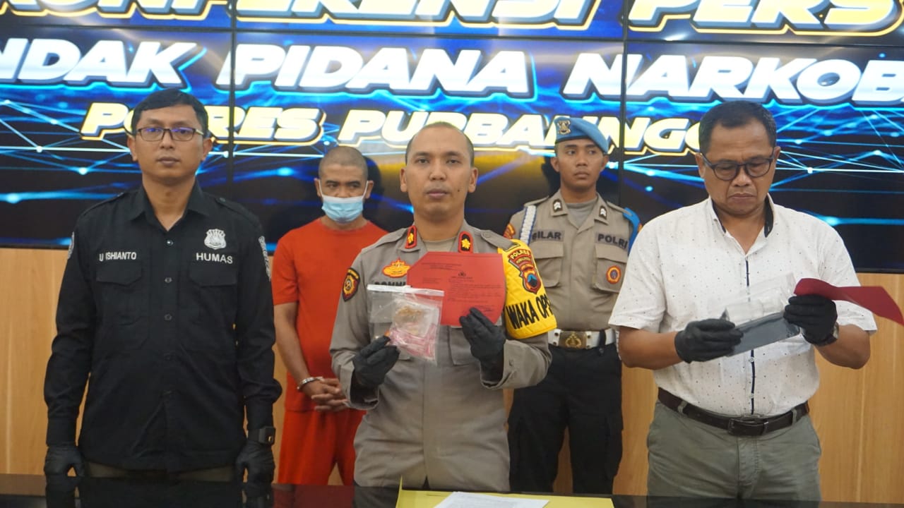 Wakapolres Purbalingga Kompol Donni Krestanto saat memberikan keterangan, Selasa (9/4/2023) mengatakan pihaknya berhasil mengungkap kasus penyalahgunaan narkotika jenis sabu. Tersangka yang diamankan yaitu S (44) warga Kecamatan Bukateja, Kabupaten Purbalingga.