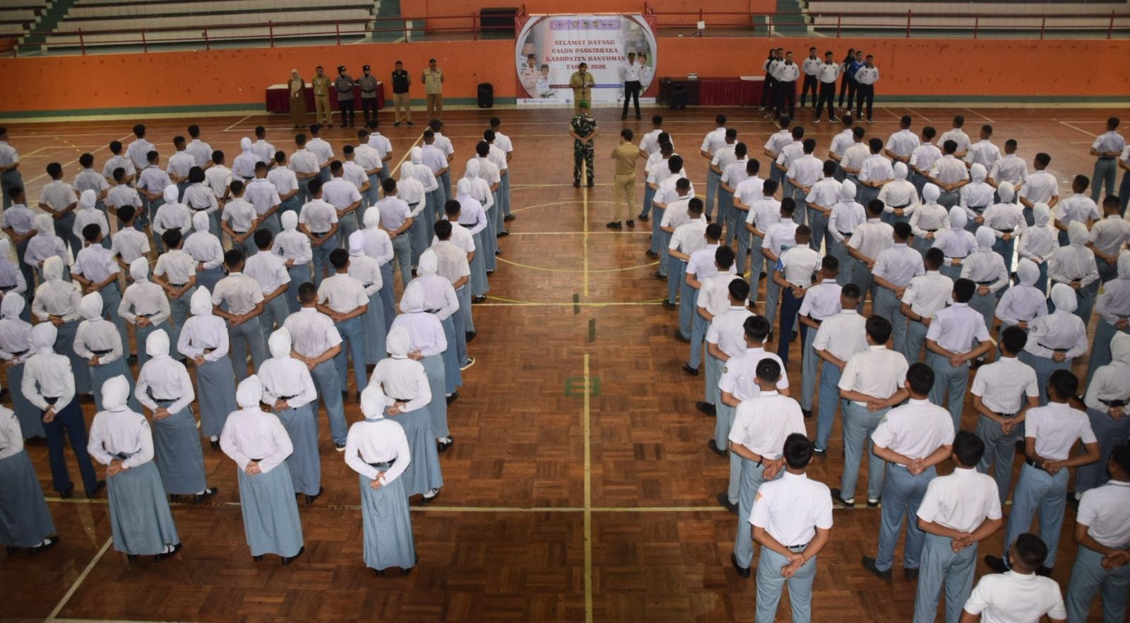 Banyumas | mediasinarpagigroup.com – Sekretaris Daerah Kabupaten Banyumas Agus Nur Hadie, didampingi Kepala Badan Kesatuan Bangsa dan Politik (Bakesbangpol) Eko Heru Surono, secara resmi membuka seleksi lanjutan yaitu Tes Wawasan Kebangsaan dan Tes Inteligensi Umum (TIU) bagi calon Paskibraka Kabupaten Banyumas Tahun 2026. Kegiatan ini dilaksanakan pada Senin (13/04/2026) di Sasana Krida GOR Satria.