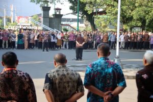 Banyumas  | mediasinarpagigroup.com – Sekretaris Daerah Kabupaten Banyumas Agus Nur Hadie, memimpin apel perdana pasca libur Lebaran 1446 Hijriah di Halaman Pendopo Si Panji pada Selasa (8/4/25) pagi. Pada Apel yang dihadiri Wakil Bupati Banyumas Dwi Asih Lintarti dan diikuti pegawai di lingkungan Setda, BKAD dan Dinkominfo Banyumas ini Agus menegaskan kepada seluruh pegawai untuk kembali bekerja dan fokus pada tugas pokok, fungsi masing-masing terutama pada pelayanan masyarakat