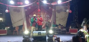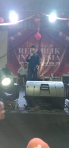 Acara pentas kemerdekaan RI ke 78 dipandu oleh dua MC Ustad Dicky dan Bang Saman, MC membuat acara semakin meriah oleh karena dibubuhi kelakar yang membuat para hadirin tersenyum dan tertawa. (Budi)