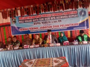 Prosesi serah terima jabatan ini di laksanakan di aula kantor Wali Nagari Koto Sani karena Wali Nagari yang lama ikut mencalonkan diri sebagai Bacaleg DPRD Kabupaten Solok di Periode 2024 nantinya.