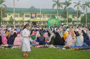 “Moment Sholat Idul Fitri ini, kita jadikan sebagai wahana dan wujud toleransi kerukunan umat beragama diwilayah, karena toleransi umat beragama merupakan kunci penting dalam suatu bangsa demi tetap tegak kokohnya persatuan dan kesatuan bangsa”, terangnya.