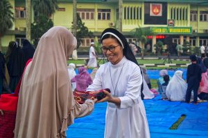 Para Pendeta, Biksu maupun Biarawan dan Biarawati serta unsur pemuda-pemuda umat beragama lain seperti Banser dan pemuda Kristen saling asah, asih dan asuh membantu dan menolong tanpa pamrih kepada sesamanya umat muslim yang akan melaksanakan sholat Ied agar pelaksanaan kegiatan Sholat Ied tersebut berlangsung aman, lancar, nyaman dan khusu.