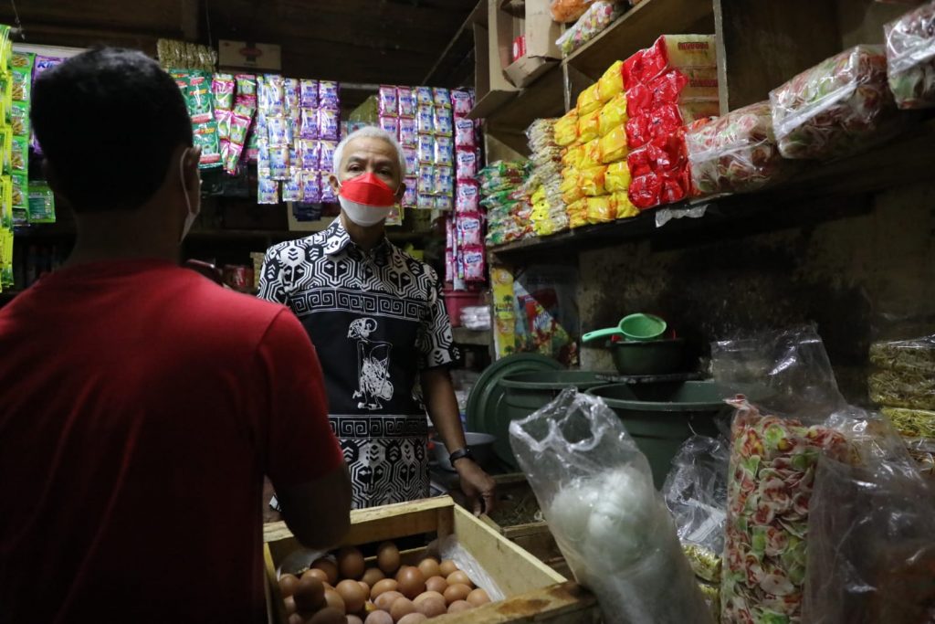 “Minyak goreng curah kepriwe? Ana apa ora? Ragane larang? (minyak goreng bagaimana? Ada tidak barangnya? Harganya mahal apa tidak),” tanya Ganjar menggunakan bahasa ngapak.