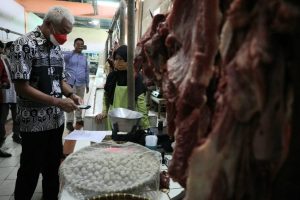 Ganjar pun kemudian berkeliling menemui sejumlah pedagang. Ia mengecek harga-harga yang dijual. Saat menemui pedagang ayam, Ganjar mendapat info jika harga masih stabil, sekitar Rp38.000-Rp40.000.