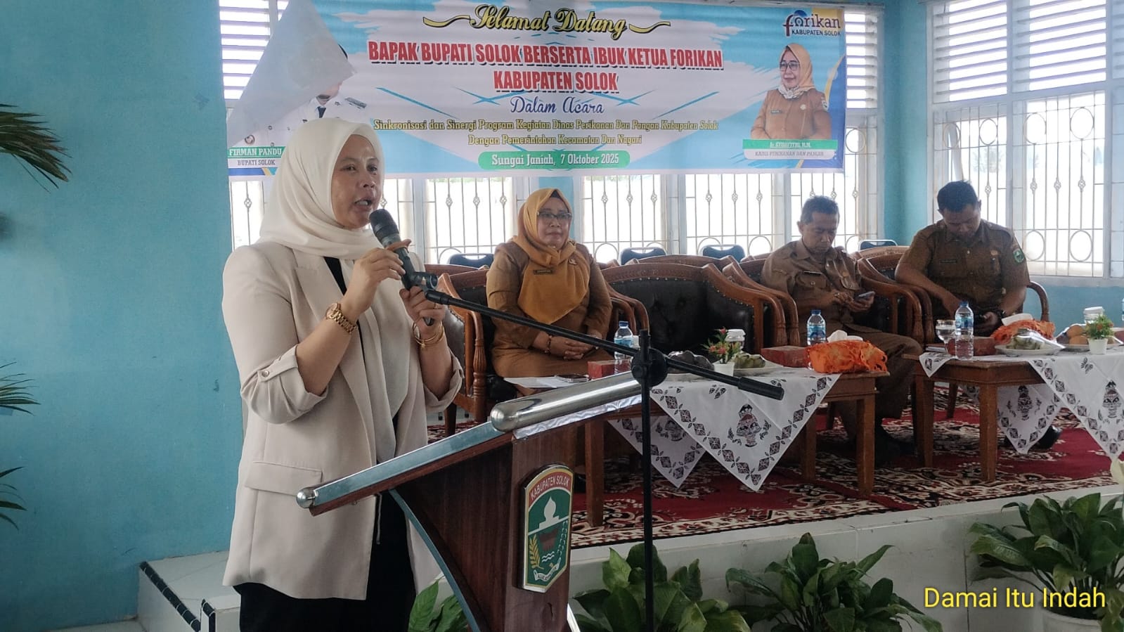 Sementara itu, Ketua FORIKAN Kabupaten Solok, Ny. Nia Jon Firman Pandu, dalam arahannya menegaskan bahwa Pemkab Solok terus memperkuat program prioritas yang menyentuh langsung kebutuhan masyarakat.