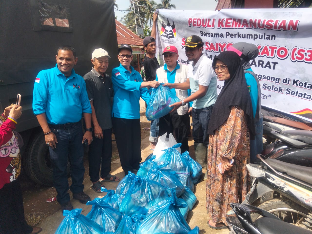 Melihat kondisi tersebut, tim Solok Saiyo Sakato yang terdiri dari 13 anggota turun langsung ke lokasi bencana untuk menyalurkan bantuan sembako kepada Posko Satgas Peduli Nagari Koto Sani. Bantuan tersebut berasal dari hasil penggalangan donasi yang dilakukan organisasi SSS bersama masyarakat Solok Raya.