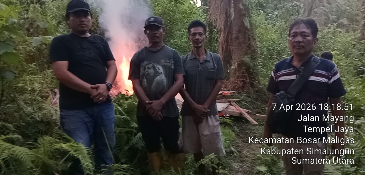 Simalungun | mediasinarpagigroup.com – Tidak ada negosiasi, tidak ada kompromi. Itulah pesan tegas yang ditunjukkan Polsek Bosar Maligas Polres Simalungun Polda Sumatera Utara dalam menghadapi ancaman penyalahgunaan narkotika di wilayahnya. Bertindak cepat atas laporan masyarakat, jajaran Polsek Bosar Maligas menggerebek, merubuhkan, dan membakar habis sebuah gubuk yang diduga kuat dijadikan lapak penyalahgunaan narkotika di kawasan perladangan Huta II Penggalangan, Nagori Boluk, Kecamatan Bosar Maligas, Kabupaten Simalungun, pada Selasa, 07 April 2026, sekira pukul 18.00 WIB hingga selesai.