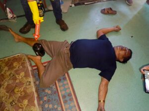 Setelah mendapat laporan itu, petugas kita pun langsung turun ke lokasi untuk melakukan olah tempat kejadian perkara ( TKP ). Saat tiba di TKP korban ditemukan dengan posisi terlentang dan mengeluarkan darah dari hidung dan mulut.
