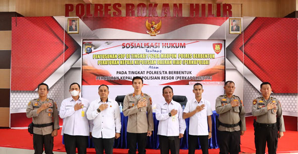 Kapolres Rokan Hilir AKBP Andrian Pramudianto SH SIK MSi dalam sambutannya mengucapkan terima kasih atas sosialisasi hukum yang diberikan oleh Kasubidsum Hukum Polda Riau ke Polres Rokan Hilir ini. Kata AKBP Andrian Pramudianto SH SIK MSi dihadapan peserta sosialisasi.