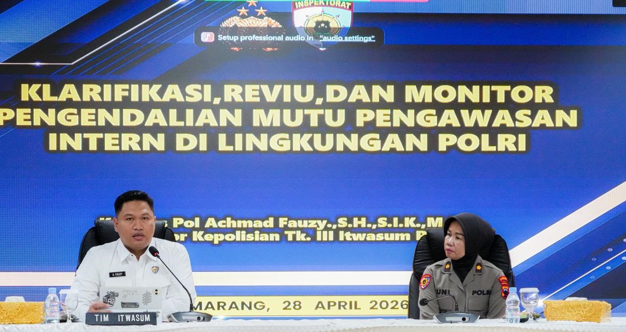 Kota Semarang | mediasinarpagigroup.com – Dalam rangka meningkatkan kualitas pengawasan dan akuntabilitas di lingkungan Polri, Polda Jateng menerima kunjungan Tim Itwasum Polri untuk melaksanakan kegiatan klarifikasi, reviu, dan monitoring pengendalian mutu pengawasan intern di lingkungan Polri Tahun Anggaran 2025. Kegiatan yang dilaksanakan pada Selasa, (28/4/2026) di Aula Mapolda Jateng ini bertujuan untuk memastikan bahwa proses audit dan pengawasan yang dilakukan di Polda Jateng berjalan sesuai dengan standar yang telah ditetapkan, serta memastikan kesesuaian antara temuan audit dan tindak lanjut yang diperlukan.