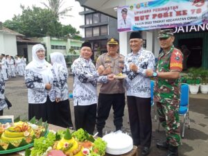 Bogor | mediasinarpagigroup.com – Tanggal 25 November adalah hari ulang tahun PGRI Persatuan Guru Republik Indonesia yang ke 78 yang digelar dihalaman kantor kecamatan Ciawi. Tampak para guru mulai dari tingkat PAUD SD, SMP dan SMA sudah pada kumpul dalam upacara tersebut Camat Ciawi Sutisna menjadi Inspektur upacara pada peringatan HUT PGRI ke-78 Persatuan Guru Republik Indonesia dan Hari Guru Nasional (HGN)