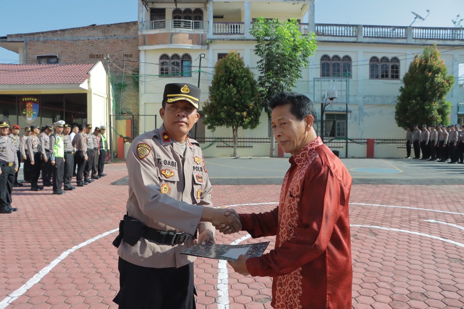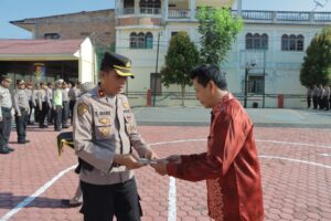 Pada Kesempatan tersebut, Wakapolres Samosir menyerahkan Piagam Penghargaan kepada Wisudawan sebagai bentuk penghargaan atas pengabdiannya selama bertugas di Polres Samosir.