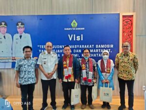 Samosir | mediasinarpagigroup.com – Wakil Bupati Samosir Drs. Martua Sitanggang, MM didampingi beberapa pimpinan perangkat daerah menerima kunjungan studi banding Dinas Bina Marga Pemprov DKI Jakarta, di Ruang Lobi Kantor Bupati Samosir, Jumat (17/02).
