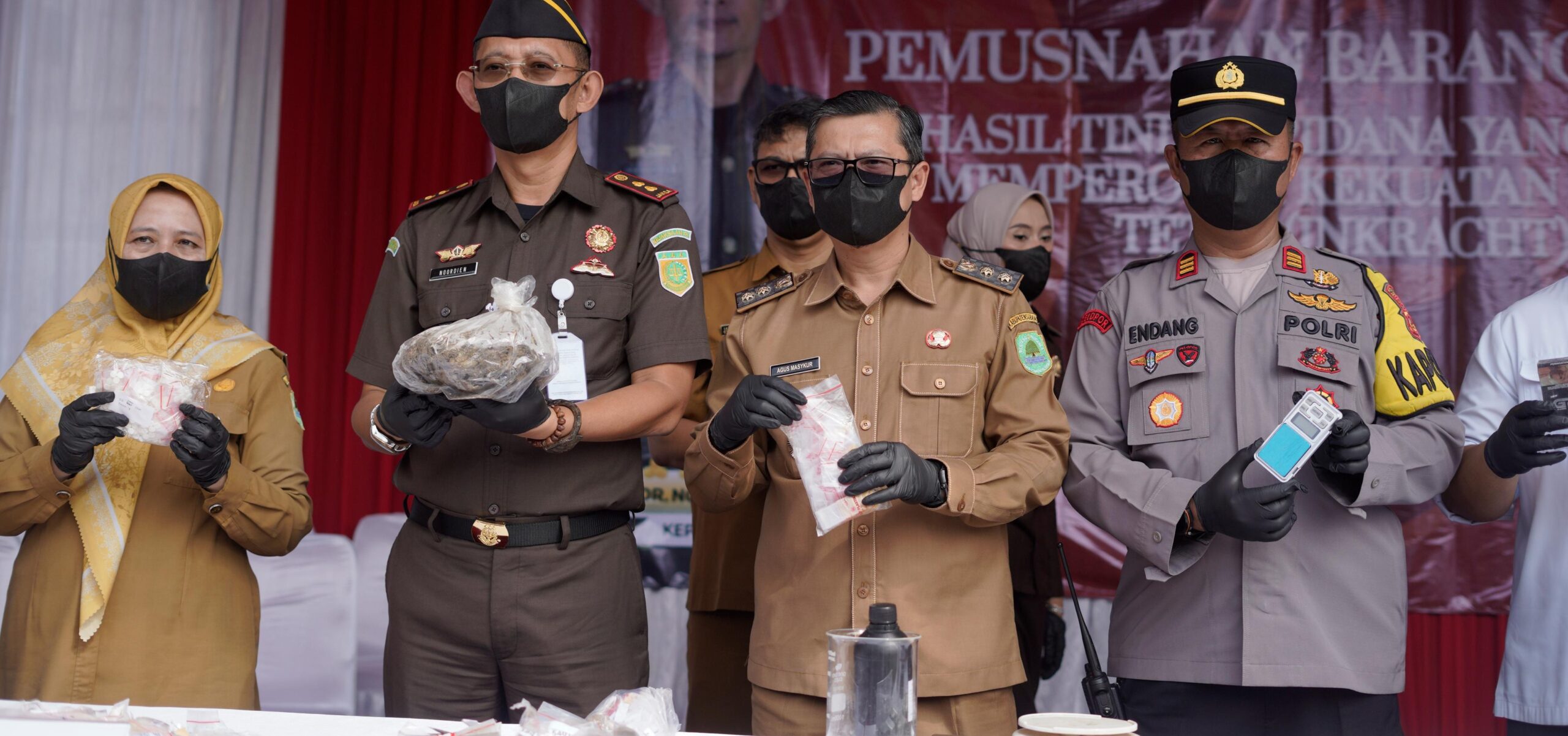 Selanjutnya, Wakil Bupati Subang, Kang Akur bersama perwakilan Forkompimda, Organisasi Masyarakat, dan Kepala OPD turut menghancurkan barang bukti yang telah diamankan.