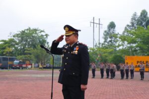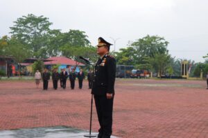 Wakapolres Kompol Ricky Michael Mandey, S.H., Bertindak Selaku Inspektur upacara (Irup) Kasat Lantas Polres Rokan Hilir AKP R. Sudaryono, S.I.K., M.M., bertindak sebagai perwira upacara dan Ipda Johan Syahputra bertindak pula sebagai komandan upacara.