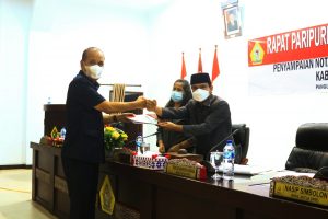 Samosir, mediasinarpagigroup.com – Wakil Bupati Samosir Martua Sitanggang sampaikan Nota Pengantar atas Lima Rencana Peraturan Daerah (RANPERDA) Kabupaten Samosir pada rapat Paripurna yang di Pimpin oleh Ketua DPRD Samosir Sorta E. Siahaan didampingi Wakil Ketua DPRD Samosir Nasib Simbolon dan Pantas Marroha Sinaga yang yang dilaksanakan di Gedung Rapat DPRD Samosir, Senin (14/3/2022). Turut hadir Sekretaris Daerah Jabiat Sagala, dan para Asisten dan seluruh Pimpinan SKPD.