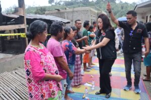 Satika Simamora yang terketuk hatinya, mengunjungi serta memberikan bantuan berupa santunan uang tunai kepada korban kebakaran untuk 2 kepala keluarga pemilik unit rumah semi permanen di Desa Sibalanga,  Kecamatan Adian Koting Taput yang ludes terbakar pada minggu, (19/5/2024) sekira pukul 00.15 dini hari.