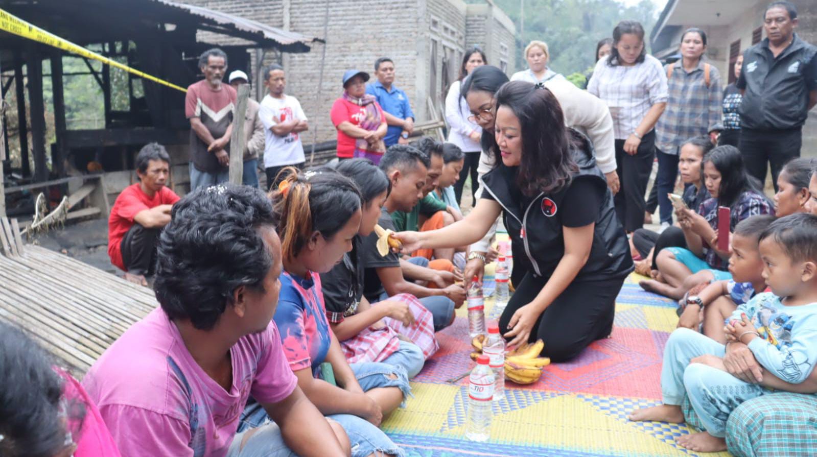 Satika Simamora yang terketuk hatinya, mengunjungi serta memberikan bantuan berupa santunan uang tunai kepada korban kebakaran untuk 2 kepala keluarga pemilik unit rumah semi permanen di Desa Sibalanga,  Kecamatan Adian Koting Taput yang ludes terbakar pada minggu, (19/5/2024) sekira pukul 00.15 dini hari.